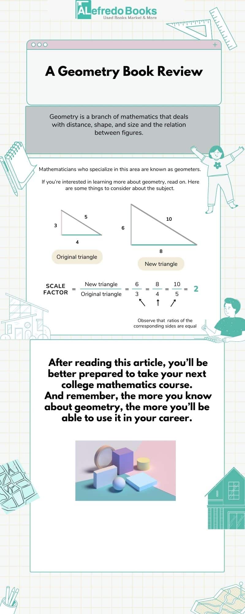 Geometry is a branch of mathematics that deals with distance, shape, and size and the relation between figures. Mathematicians who specialize in this area are known as geometers. If you’re interested in learning more about geometry, read on. Here are some things to consider about the subject. After reading this article, you’ll be better prepared to take your next college mathematics course. And remember, the more you know about geometry, the more you’ll be able to use it in your career.
