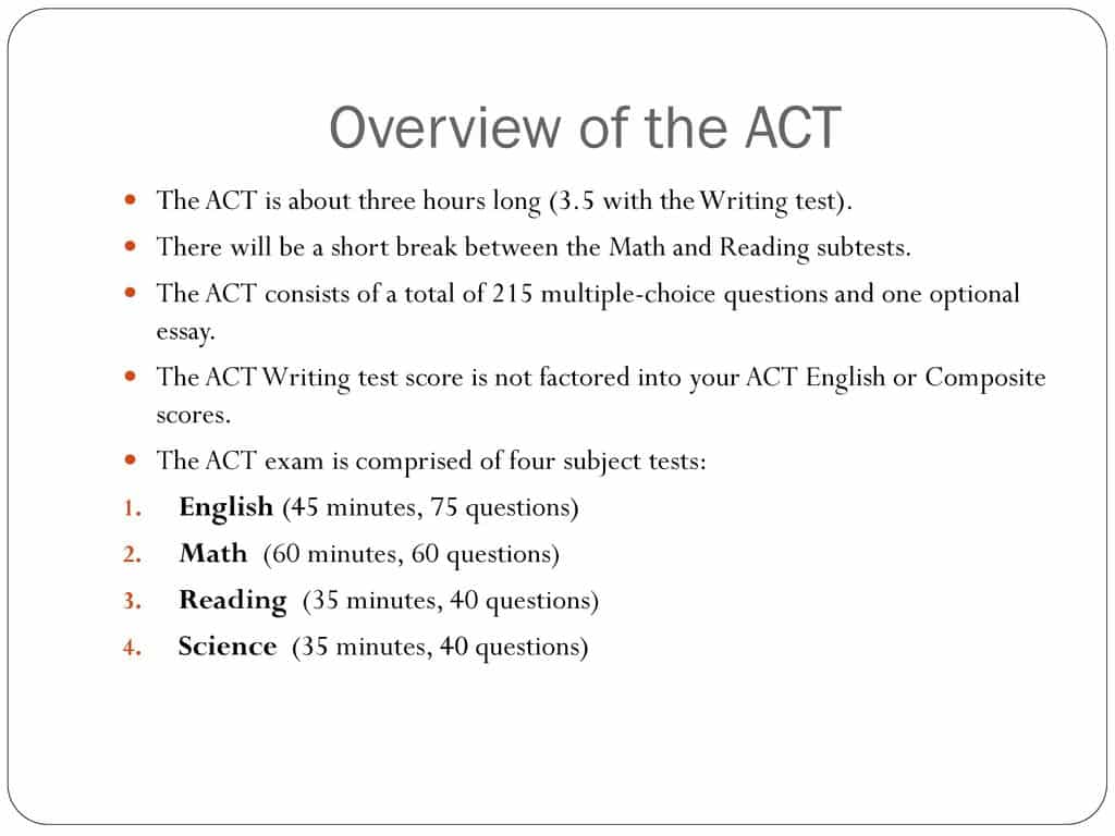 There are five subsections on ACT English, which test your understanding of grammar and punctuation conventions. The ACT’s grading process is based on a number of criteria, including sentence structure and correct usage. If you get a score of a low number on the ACT English test, you’ll have to work harder to make up for the deficiencies. However, a high score on a subject-specific standardized test is a good indicator of how well you’ll do in college.