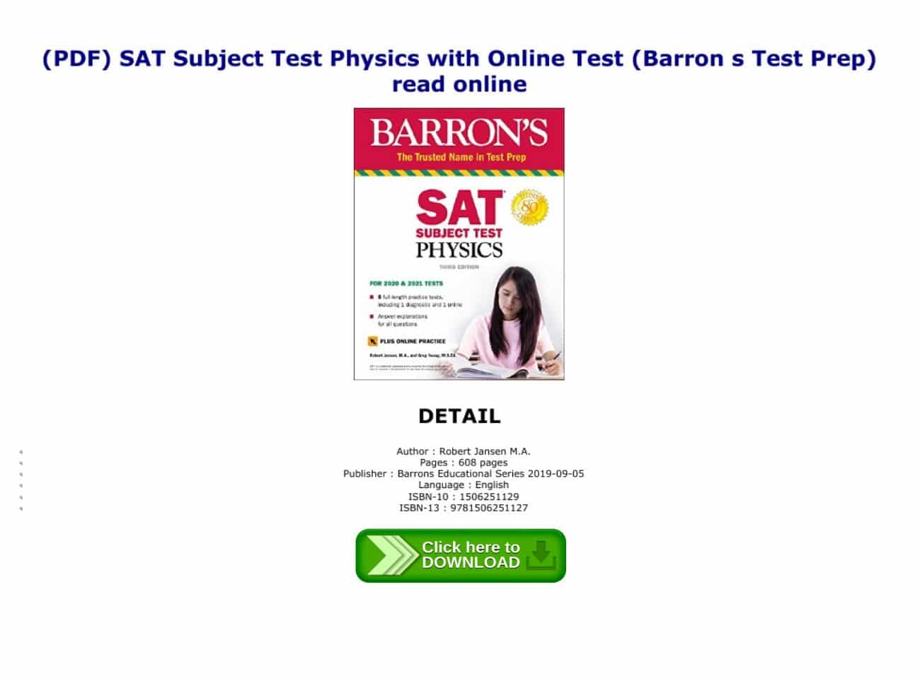 It contains 75 questions with detailed explanations. The SAT Subject Test in Physics is not difficult if you have taken classes in this subject, but you will need to know all the concepts in order to ace it. You may have a strong background in physics and want to prepare for the physics exam. With Barron’s SAT subject test in physics, you’ll find it easier to ace the exam.
